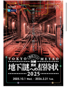 東京全体を舞台に、東京メトロを利用して、参加者自身が実際に街を歩きながら、東京メトロの駅やその周辺の街々に隠された謎を解き明かしながらゴールを目指す体験型ゲーム。